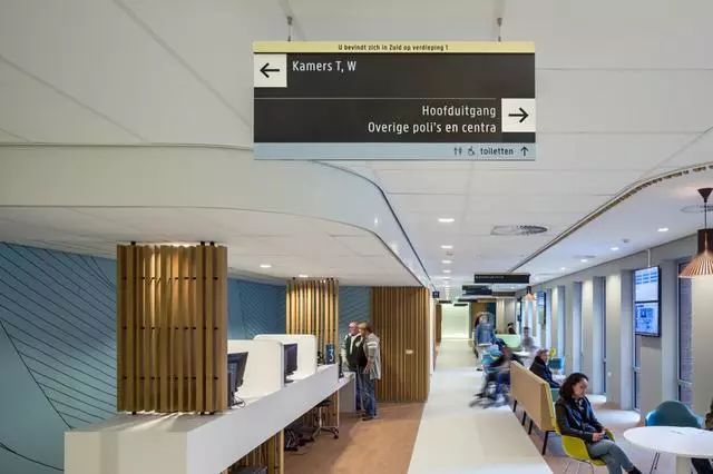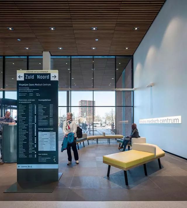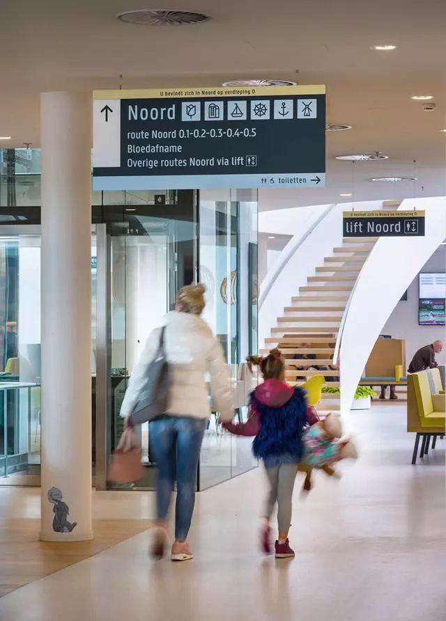 為了解決這個(gè)問(wèn)題,Zaans Medisch Centrum設(shè)計(jì)團(tuán)隊(duì)從醫(yī)院入口到內(nèi)部,全程做好導(dǎo)視標(biāo)牌的點(diǎn)位布置。