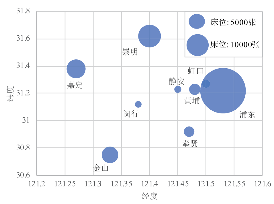 圖1 上海市部分方艙醫(yī)院分布及床位數(shù)